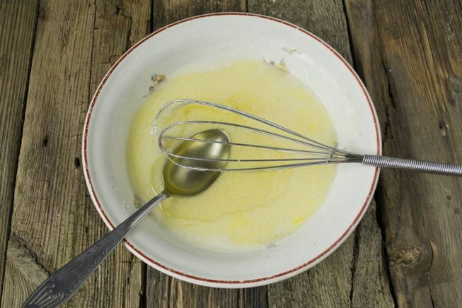 - Meng gesmolten boter tot een homogene vloeibare massa.