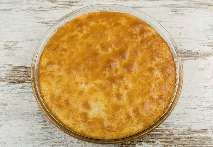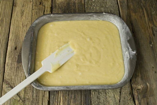 - Strijk aan het einde het deeg glad met een spatel of lepel en stuur het 35-40 minuten in een voorverwarmde oven op 170 graden. De tijden kunnen variëren, afhankelijk van de kenmerken van uw oven.