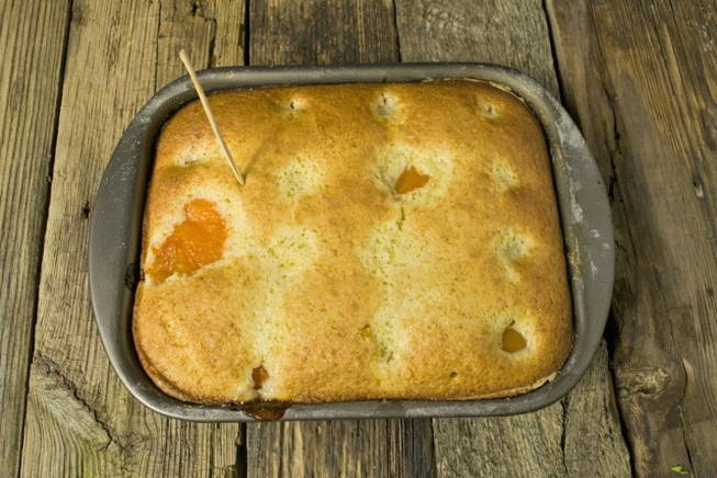 Ballonschotel met abrikozen op kefir in de oven