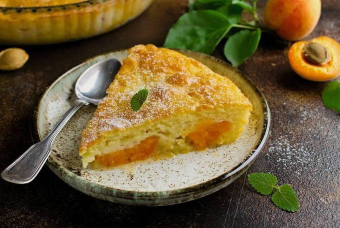 Matig zoete knapperige zanddeegbodem is bestand tegen heerlijke wrongelvulling met abrikozen. Na de eerste hap zullen uw gasten verrukt zijn en maakt het niet meer uit of u het een taart, een abrikozencharlotte of een klassieke cheesecake noemt.