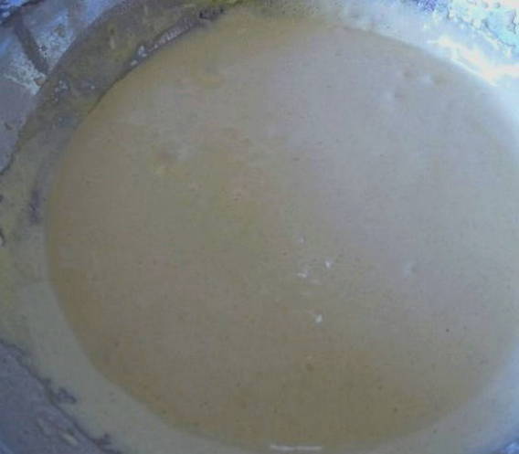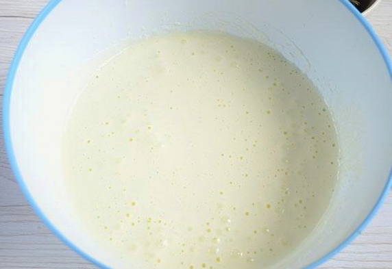 - Giet bloem in kleine porties en roer goed. Het deeg blijkt dik, maar stroperig en vloeibaar te zijn.