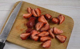 - We bereiden alle benodigde producten voor. Ontdooi de aardbeien.