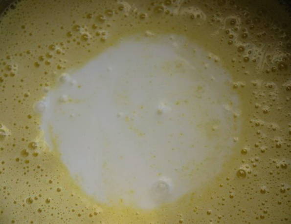 - Voeg zuiveringszout toe, meng voorzichtig.