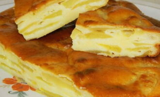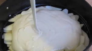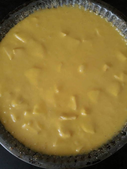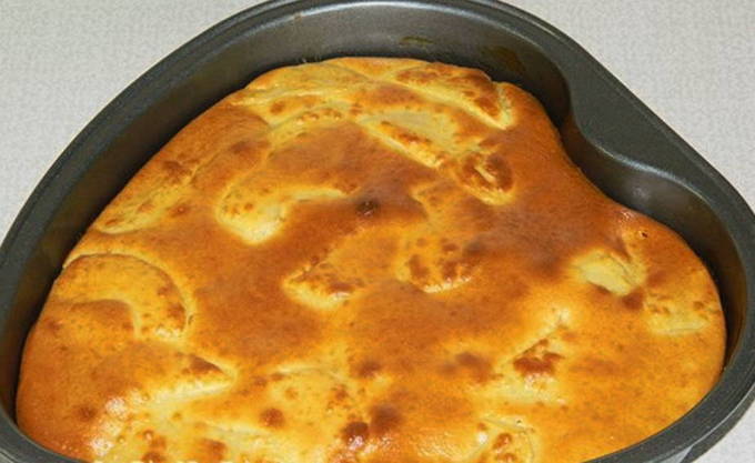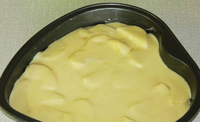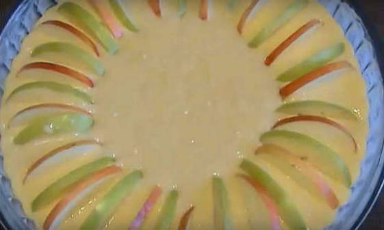 - Giet het resulterende ei-bloemmengsel over de fruitplakken en stuur het 40 minuten naar de oven op een temperatuur van 200 graden.