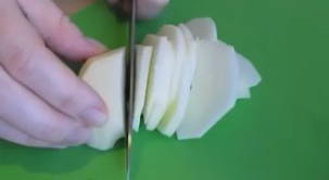 - Spoel de appels onder stromend water, snij de zaaddoos uit en snijd in plakjes.