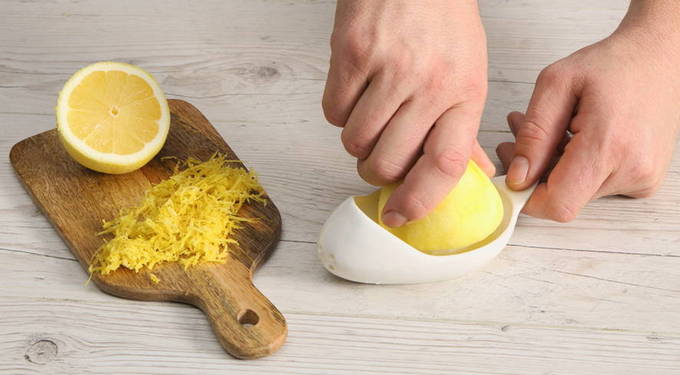 - Verwijder voor de vulling van een citroen de schil, snij in twee delen en pers het sap eruit.