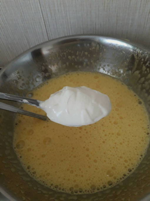 - De volgende stap is het toevoegen van zure room (het vetpercentage is niet belangrijk, maar hoe hoger, hoe lekkerder).