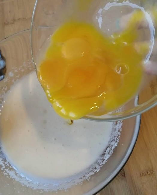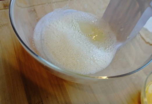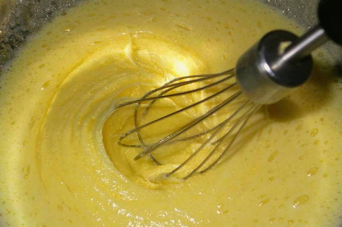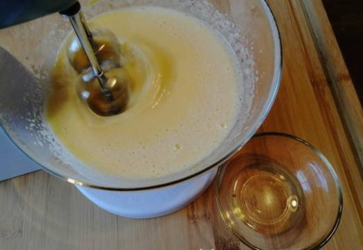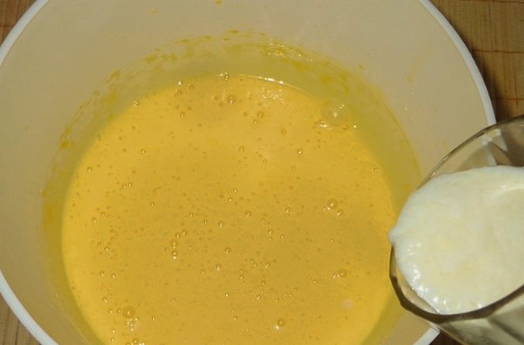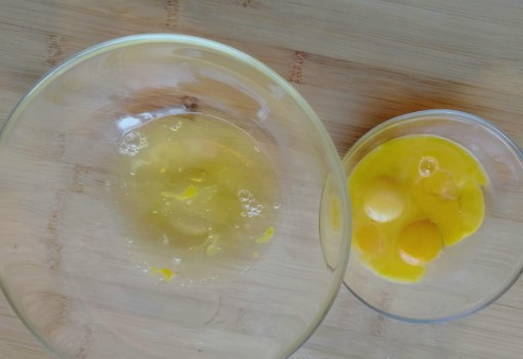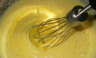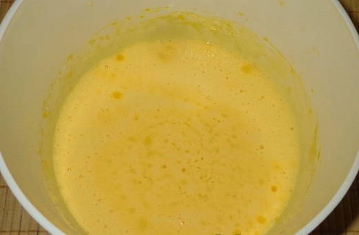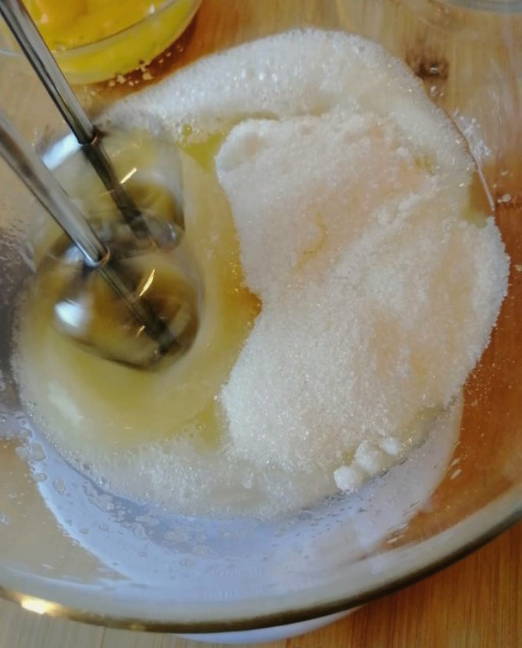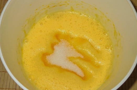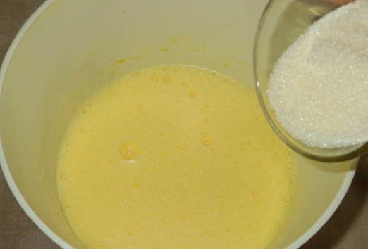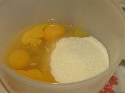 - Combineer kristalsuiker en eieren in een aparte container - klop met een mixer tot een wit schuim ontstaat.