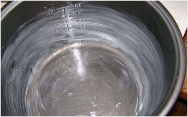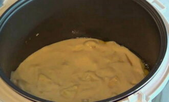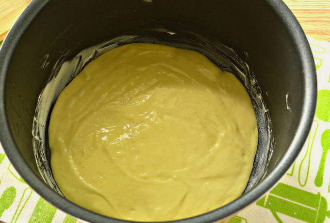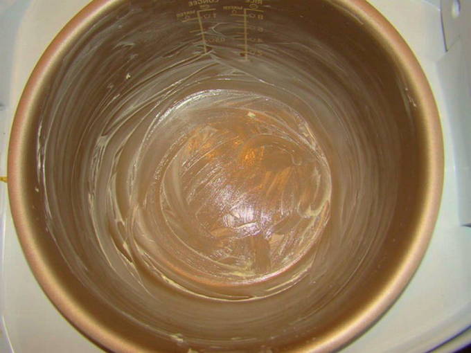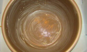 - Om de cake niet te verbranden, bestrijk je de multicooker-kom met boter.