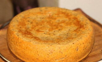 - Open na 80 minuten het deksel en laat het dessert nog 5-10 minuten trekken, verwijder het dan voorzichtig en doe het op een schaal.
