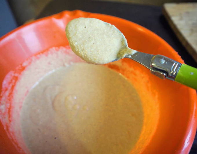 - Klop met een garde of mixer tot een gladde massa.