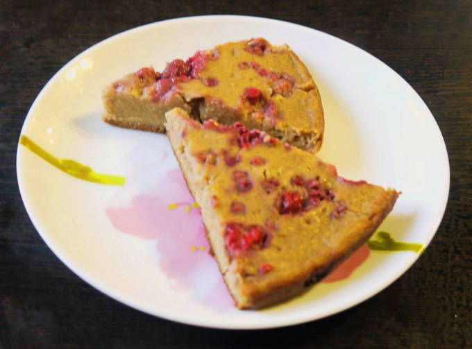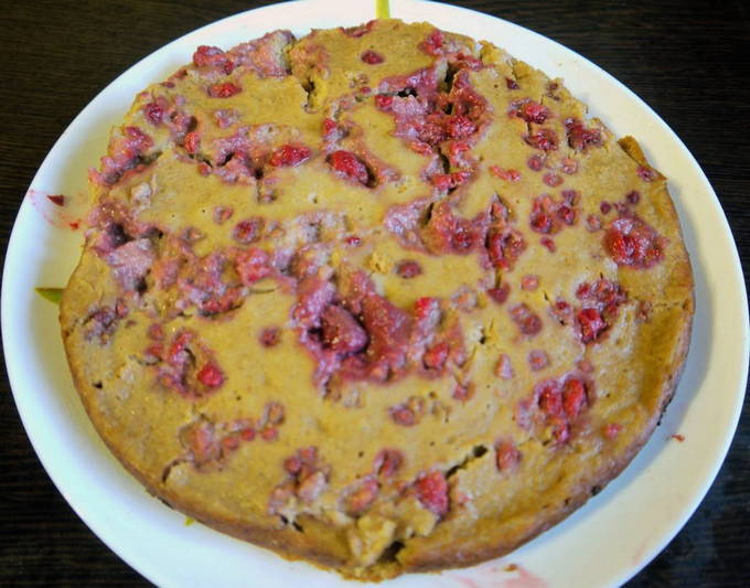 - Vet de kom van de multicooker in met kokosolie en giet het deeg erin. Bestrooi voor schoonheid met een paar lepels bessen erop. Een uur koken, bakprogramma.
