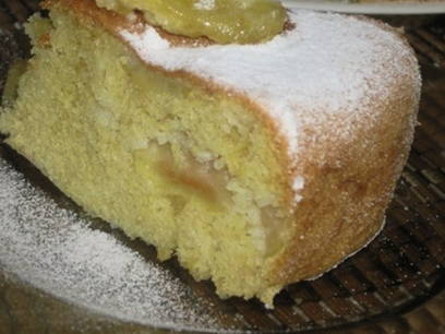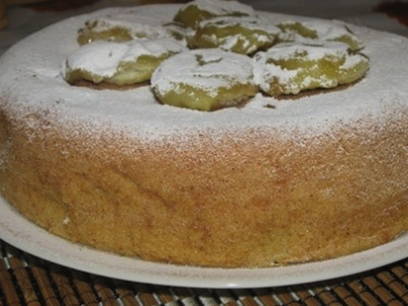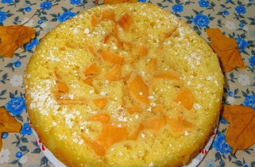 - Bestrooi de hete cake met poedersuiker, haal uit de kom en serveer. Eet smakelijk!