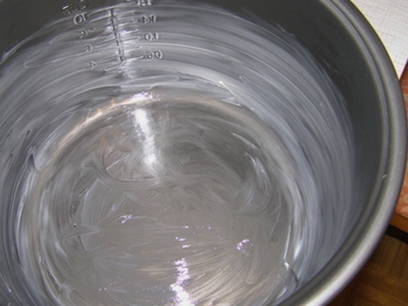 - We bestrijken de multicooker-kom royaal met een stuk boter.