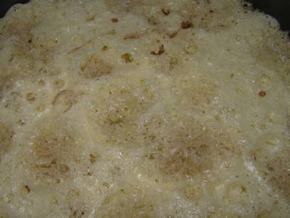 - Voeg geleidelijk kristalsuiker toe, zonder de mixer uit te zetten, en mix tot een gladde massa, d.w.z. volledige oplossing van suikerkristallen.