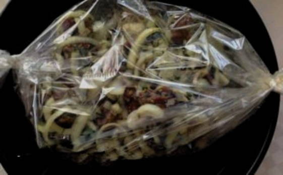 - Snijd een uur later het cellofaan er bovenop en draai elk stuk voorzichtig om en kook dan nog ongeveer 20-25 minuten. Eet smakelijk!