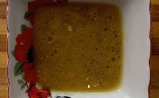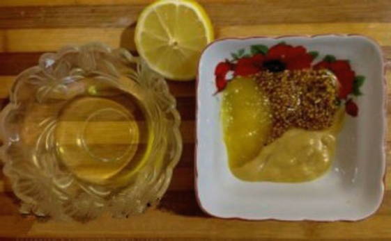 - Bereid de marinade in een aparte kom: meng Franse en Russische mosterd, honing, zonnebloemolie en citroensap.
