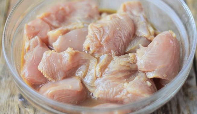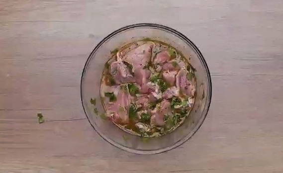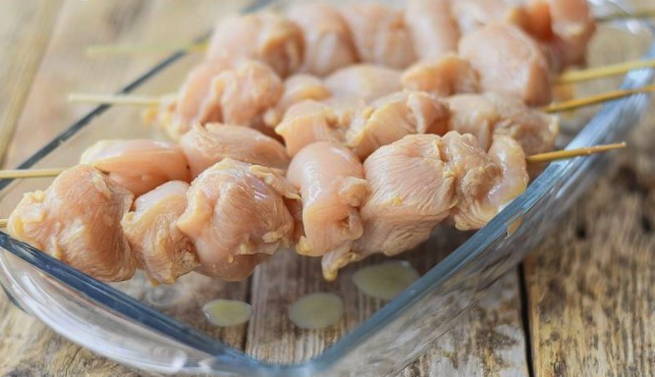 - We laten de toekomstige pluimvee-kebab enkele uren in de koelkast voor impregnatie.