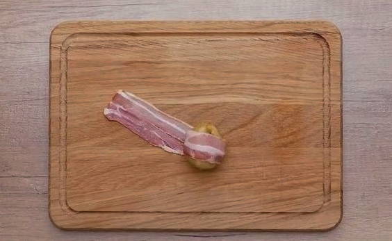 - Wikkel de halffabrikaten in een reepje spek.