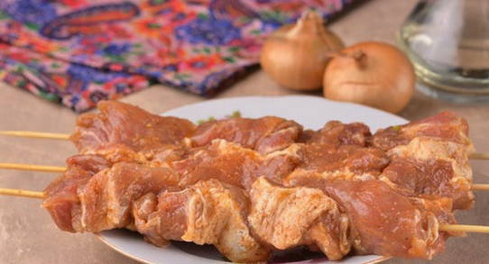 Dankzij de grote hoeveelheid uien blijkt het gebakken vlees ongelooflijk sappig en smelt het gewoon in je mond. Heerlijke en aromatische sjasliek kan gemakkelijk worden bereid zonder je eigen appartement te verlaten!