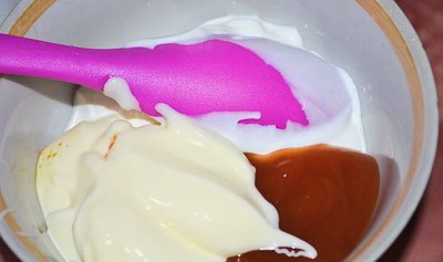 - Bereid de saus voor. Combineer ketchup, zure room en mayonaise in een kleine kom. Pel de knoflook en passeer door een pers in de saus. Meng grondig tot een gladde massa.