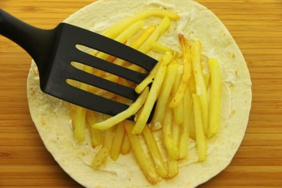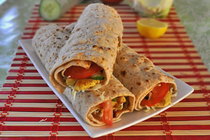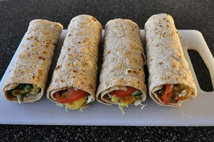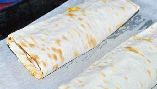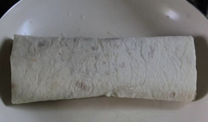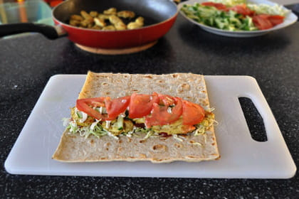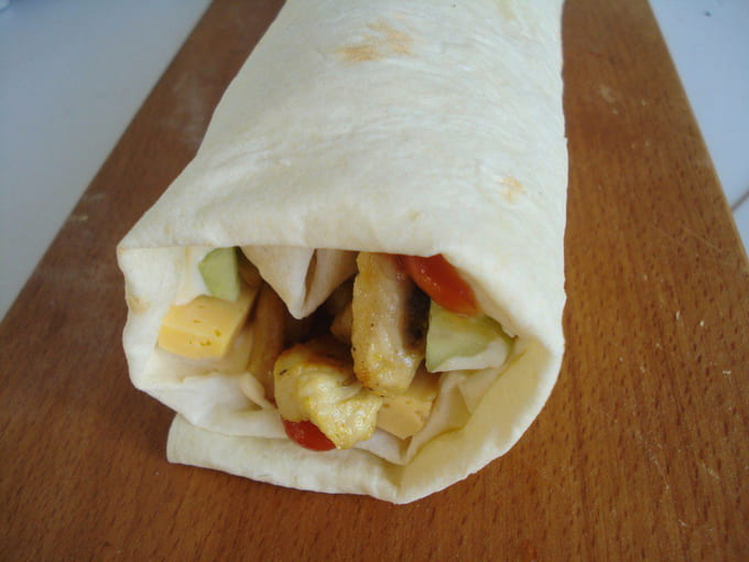 - Rol het pitabroodje met een envelop strak op zodat de vulling er niet uit valt.
