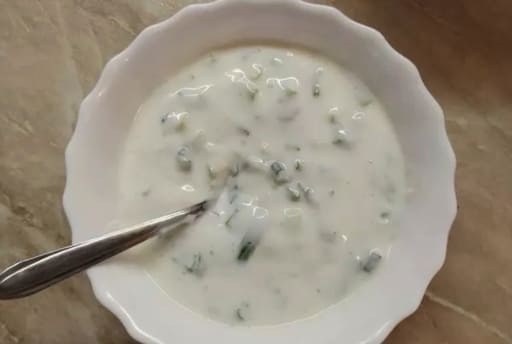 - Bereid de saus voor. Spoel groene uien grondig onder water en droog, hak ze fijn met een scherp mes. Combineer natuurlijke yoghurt met gehakte groene uien.