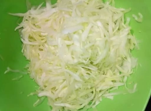 - Snijd de witte kool in middelgrote reepjes. En kneed dan met je handen om het zachter en sappiger te maken.