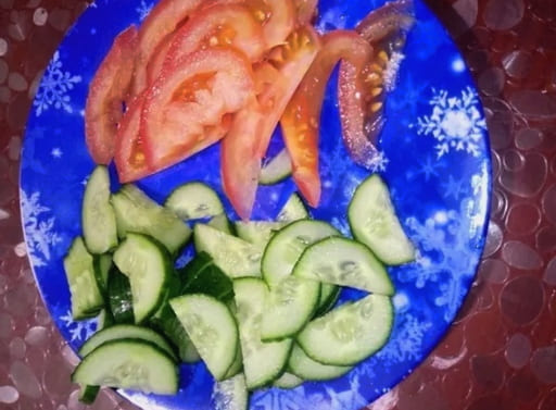 - Was tomaten en komkommers grondig en dep ze droog op een keukenhanddoek of gebruik keukenpapier. Verwijder de staarten en stelen en snijd de groenten in dunne plakjes.