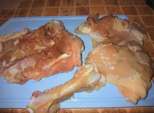 Neem de benodigde hoeveelheid kippenvlees. Deze keer heb ik kippenpoten gebruikt.