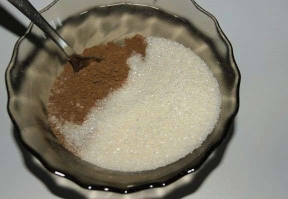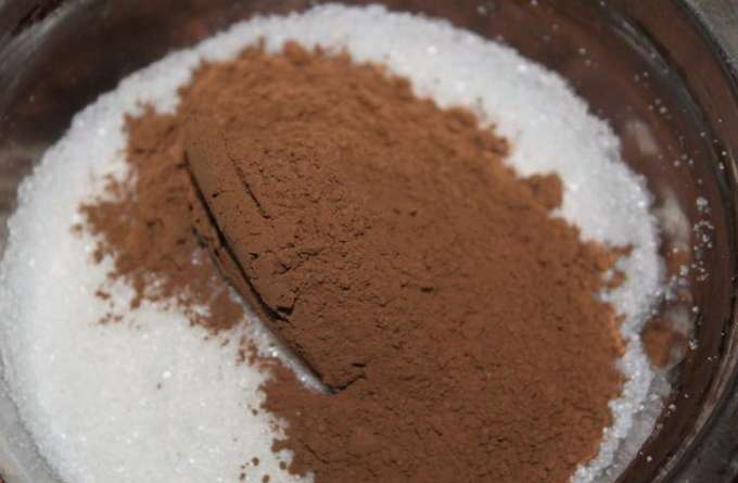 - Voeg suiker toe aan de cacao. Roer droge ingrediënten.