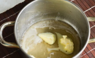 - Dompel vervolgens de boter in het mengsel en blijf roeren tot een gladde massa. We verwijderen van de kachel.