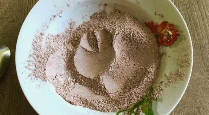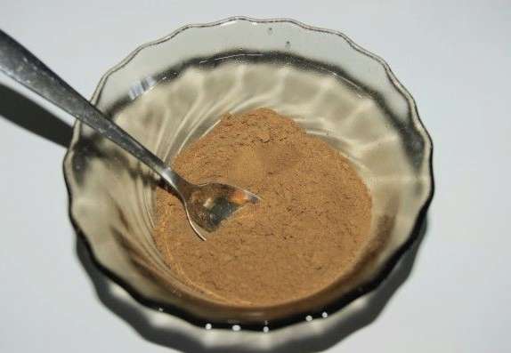 - Giet cacaopoeder in een diep bord. We breken de brokken, als die er zijn.