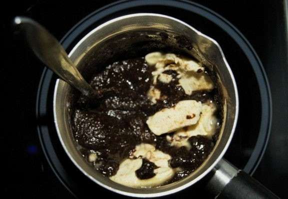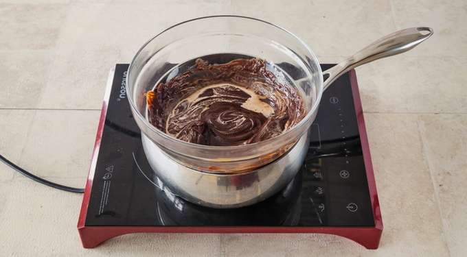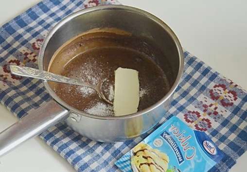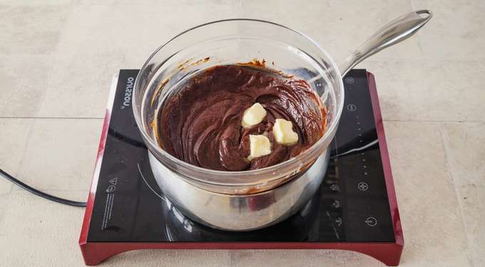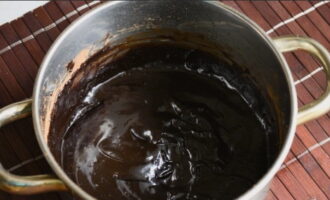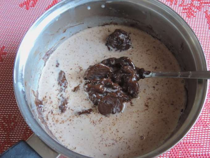 - Kook een chocoladegerecht en roer het constant. Haal van het vuur tot het product glad en dik is.