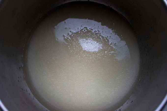 - We sturen suiker en water naar de kookpan. Verwarm de inhoud en zet op het vuur tot er siroop ontstaat.