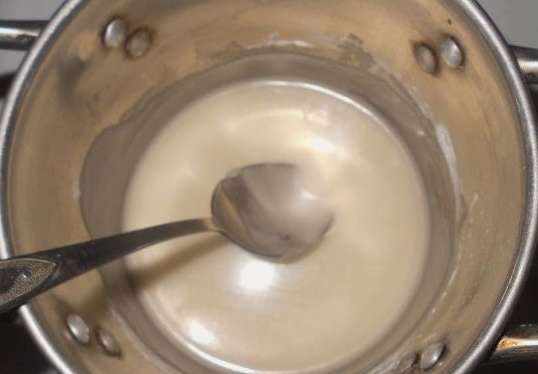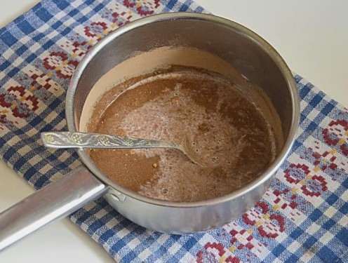 We bereiden de traktatie voor tot een gladde en uniforme samenstelling is verkregen. Daarna halen we de pan van het fornuis.