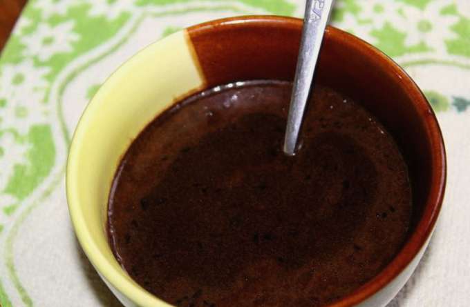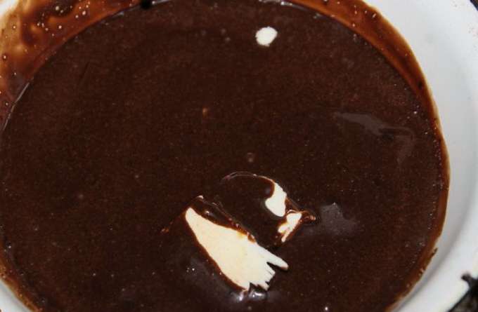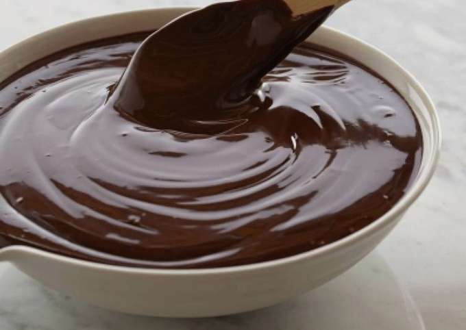 - Giet het warme chocoladeglazuur in een diepe kom. Klaar, kan worden gebruikt om zelfgemaakte desserts te versieren!
