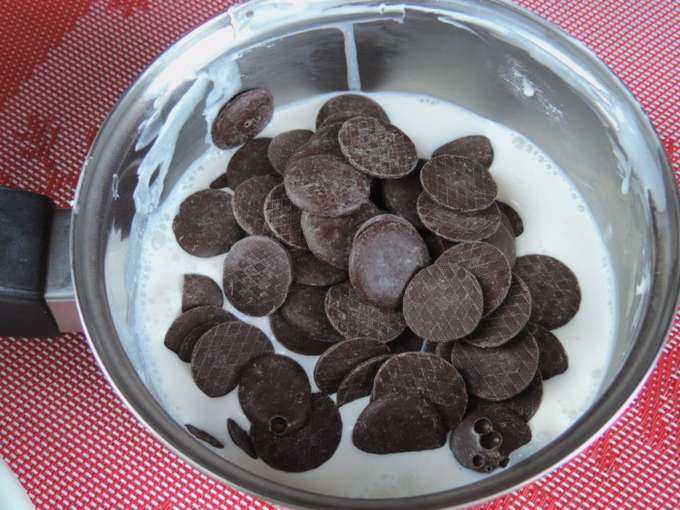- Laten we alle ingrediënten voorbereiden. Kies dikke en vette room. Bittere chocolade kan in callets of in een reep. Als we een tegel gebruiken, moet deze in kleine stukjes worden gebroken.