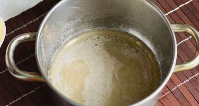 - We sturen suiker en water naar de kookpan. Verwarm de inhoud en zet op het vuur tot er siroop ontstaat.