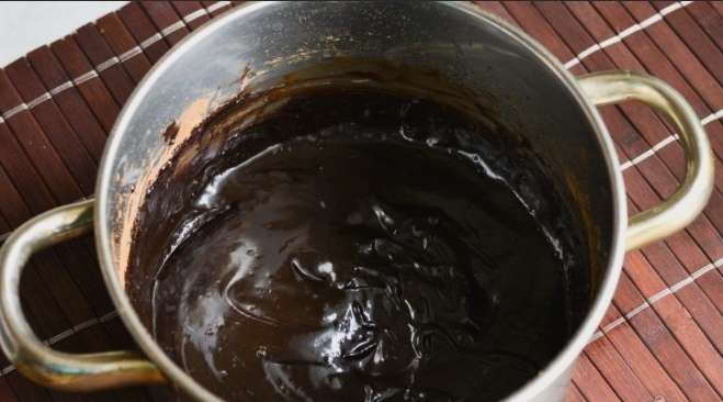- Kook een chocoladegerecht en roer het constant. Haal van het vuur tot het product glad en dik is.