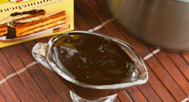 - We bereiden het glazuur in een waterbad. Roer de inhoud constant totdat een gladde verdikte massa is verkregen.