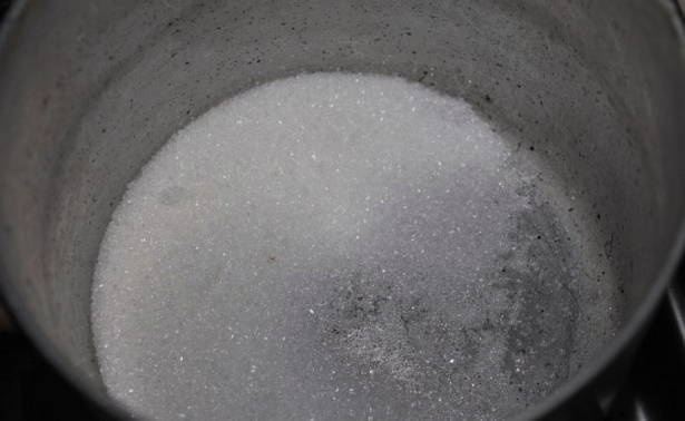 - Giet twee eetlepels suiker in een steelpan of kookpan (bij voorkeur met een aluminium coating).