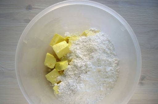 - Voeg vervolgens gekoelde boter in kleine stukjes toe.