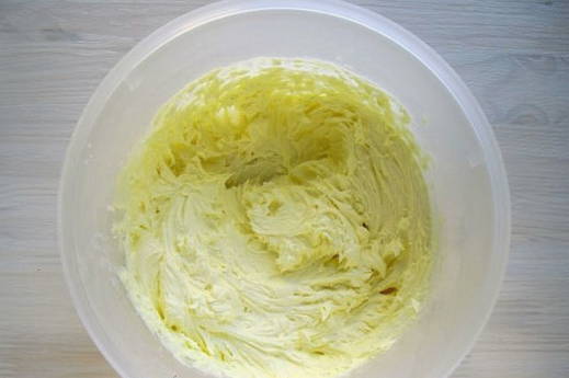 - We beginnen de massa voorzichtig te mengen met een siliconen spatel - het proces is niet snel en aanvankelijk zal het mengsel klonteren.