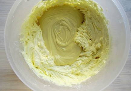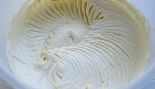 - We blijven de massa ongeveer 5 minuten kloppen en als resultaat krijgen we een stabiele en stabiele crème, waarmee je elke coating gemakkelijk kunt egaliseren. Wees creatief!