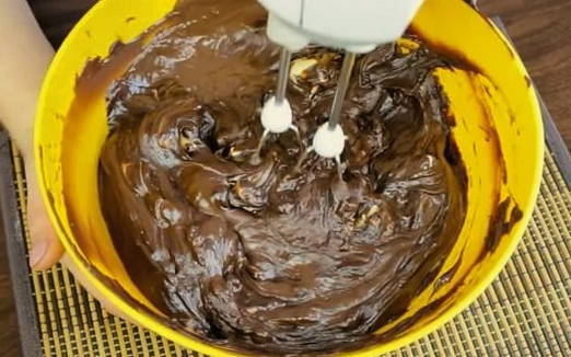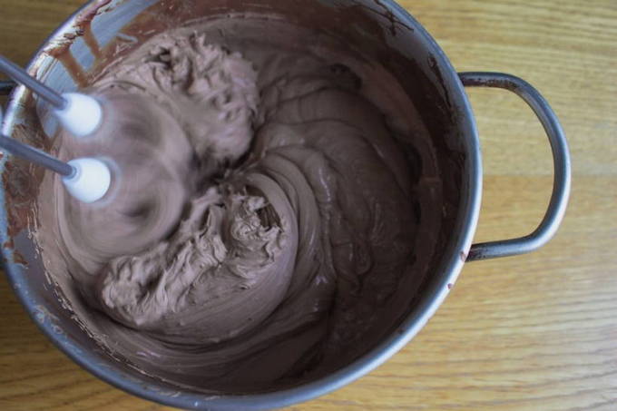 - Klop het chocolade-botermengsel met een blender tot het volume toeneemt.