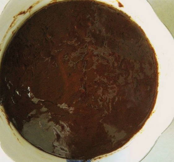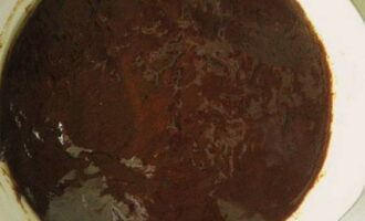 - Combineer de chocolademassa, wrongel en roer tot een gladde massa.