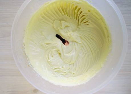 - We onderbreken opnieuw tot een gladde massa, ongeveer 3-4 minuten en voegen vanille-extract toe, mix.