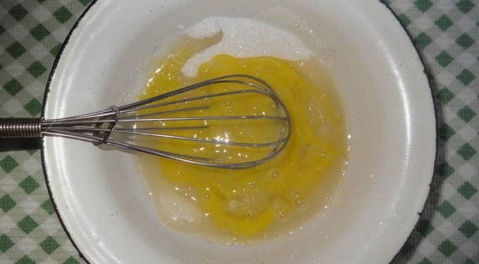 - Klop in een andere kom eieren met suiker.