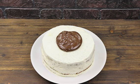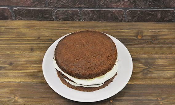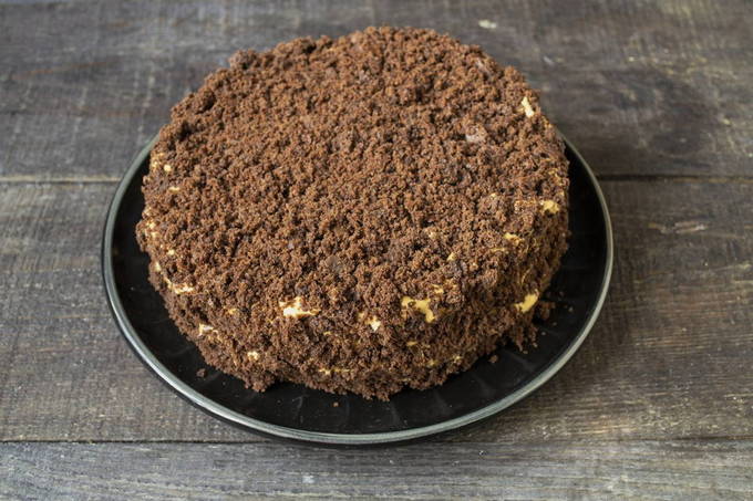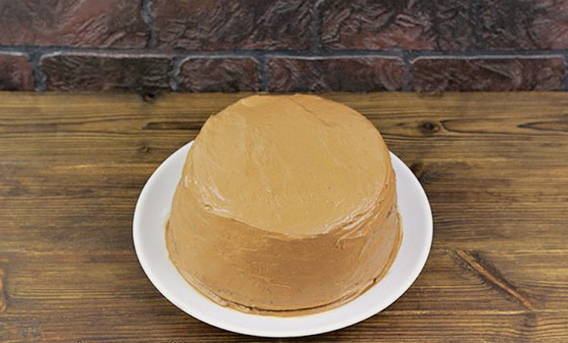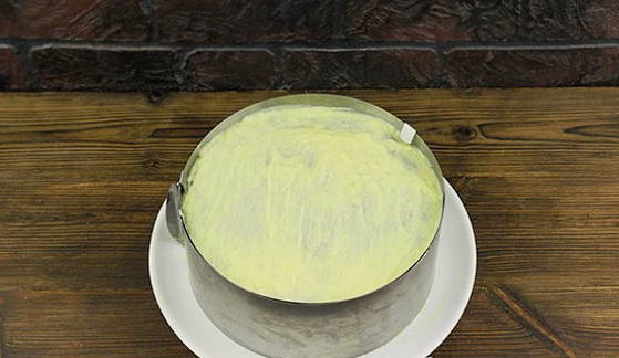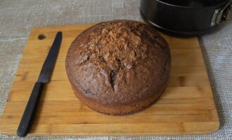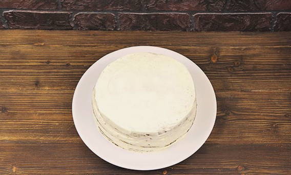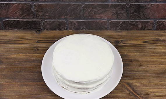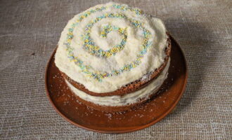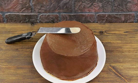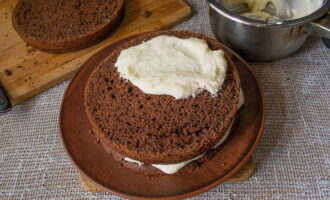 - Wij vormen de taart. We bedekken de lagen met de resulterende crème.